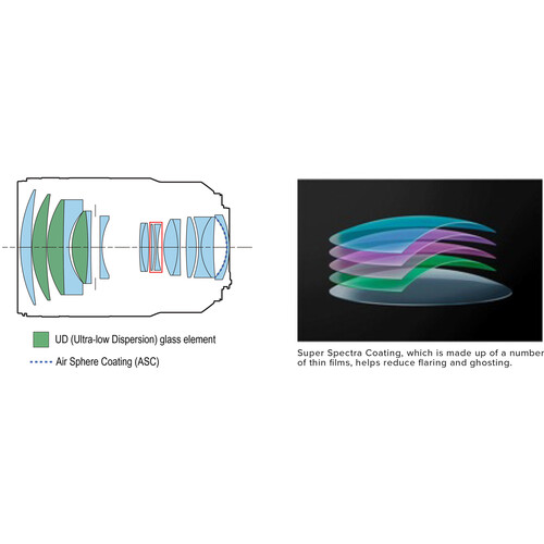 - محدودهٔ دیافراگم f/1.8 تا f/22 برای عمق میدان کم و پسزمینهٔ محو